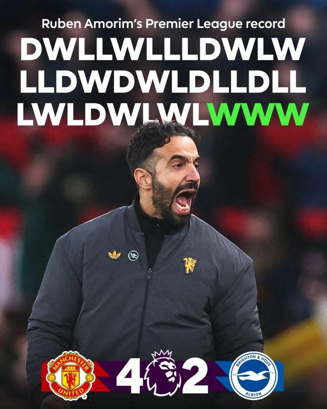 英超官方推特:阿莫林迎來三連勝